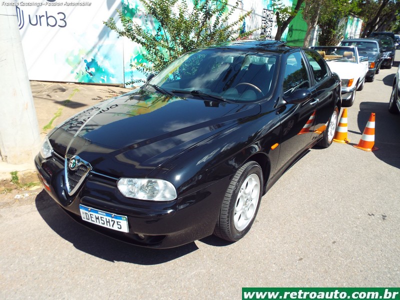 Um Alfa Romeo 156. Um dos mais belos sedãs da década de 90! Vasta gama de motores sendo o GTA V6 com 3.179 cm³ e 250 cavalos à 6.200 rpm. Fazia de 0 à 100 km/h em 6,3 segundos e velocidade máxima de 250 km/h! Preparado pela famosa Autodelta, o GTA, para cumprir o regulamento, correu com um motor quatro cilindros, 2,0 litros e cerca de 300 cavalos. Fez bonito nas hábeis mãos de Nicola Larini e Gabriele Tarquini por exemplo no ETCC (European Touring Car Cup) em 2000, 2001, 2002, 2003 e 2004. A linda perua Sportwagon Q4 tinha opção de tração 4×4. Foi substituído pelo modelo 159. O 156 já é um neo clássico!