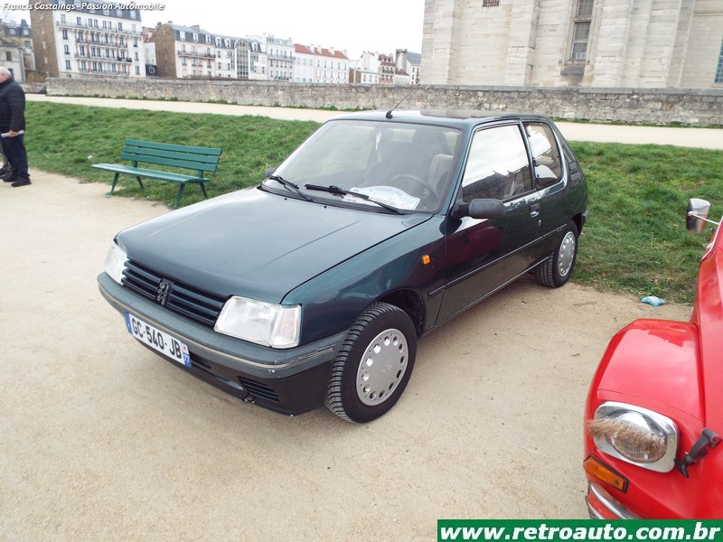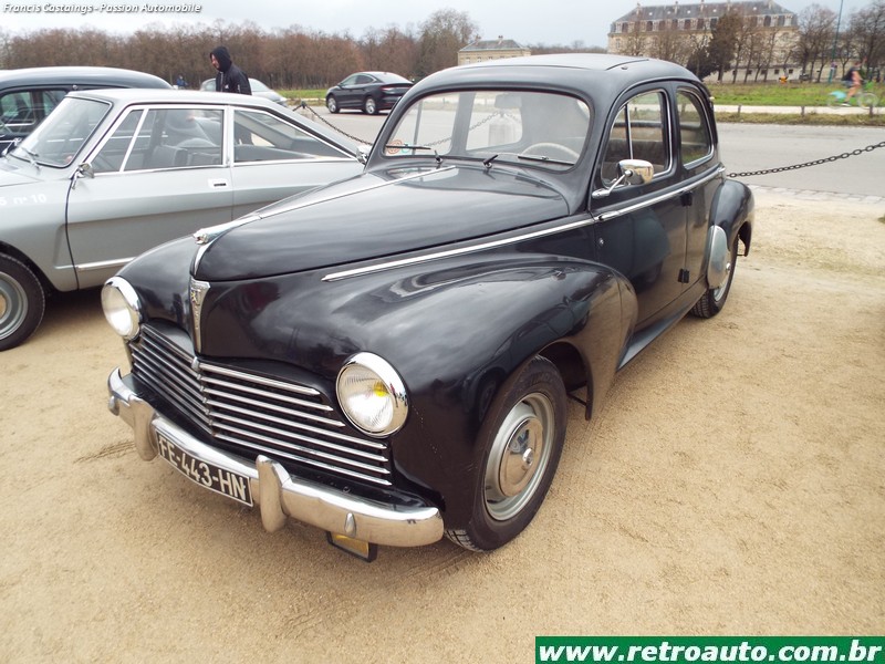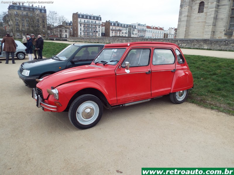 E lá, a cada primeiro domingo do mês, se reúne o maior clube de carros antigos multimarcas da França. Acima um Citroën Ami Break, um Peugeot 403 picape com caçamba e um Volkswagen Typ 1