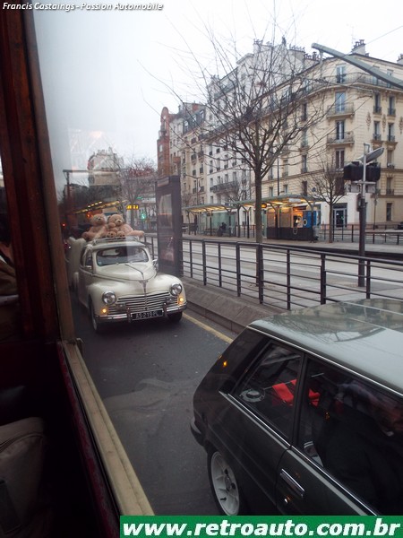 Alguns pontos famosos, outros nem tanto, ofereciam vistas de monumentos icônicos: Portões de Saint-Martin e Saint-Denis, o Arco do Triunfo, a Torre Eiffel… Os carros mais antigos eram um Amilcar de 1922, um Citroën de 1923, um Ford de 1930 e uma motocicleta Flying Squirrel de 1946. Havia também 6 carros da década de 1920, 6 da década de 1930, 10 da década de 1940, 72 da década de 1950 e 159 da década de 1960. Os carros da empresa Citroën foi a marca mais representada (115 veículos), seguida pela Peugeot (88) e Mercedes (55). Abaixo o Amilcar de 1922 ainda no reboque