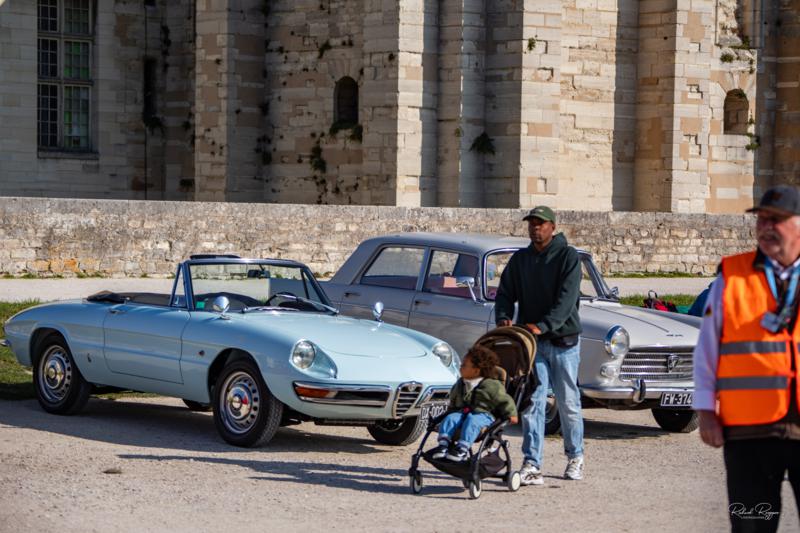 E lá, a cada primeiro domingo do mês, se reúne o maior clube de carros antigos multimarcas da França. Acima um Alfa Romeo Spider Duetto e um Peugeot 404 Berline