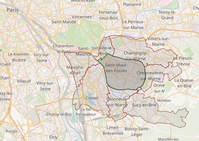 Onde: Saint-Maur-des-Fossés é uma comunidade francesa localizada no departamento de Val-de-Marne, na região de Île-de-France. Situada nos arredores da região sudeste de Paris (a 5 km das “portas” da cidade e a 1 km do Bois de Vincennes, que faz parte de Paris), a comunidade de Saint-Maur-des-Fossés é uma península banhada pela última curva do rio Marne. Ela está inserida na área metropolitana de Paris, em sua unidade urbana, em sua zona de emprego e em sua área de influência.