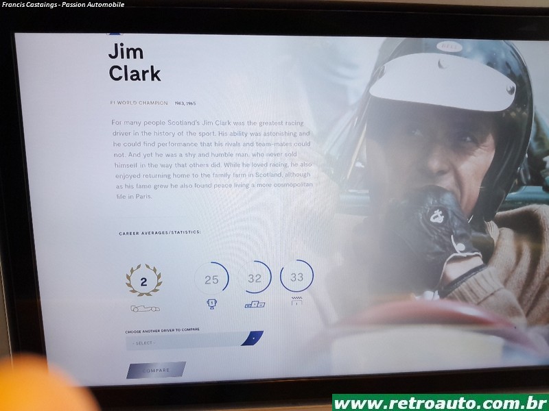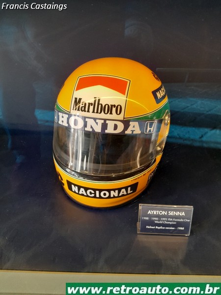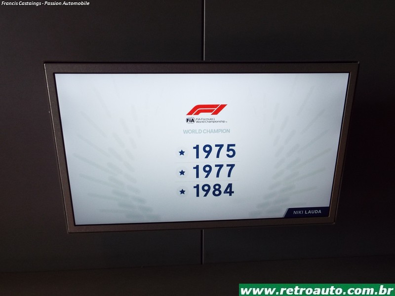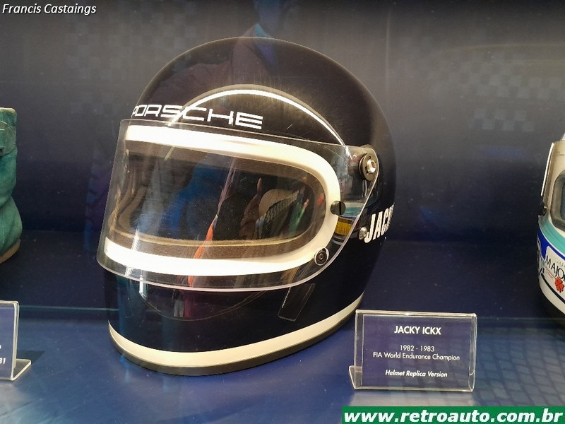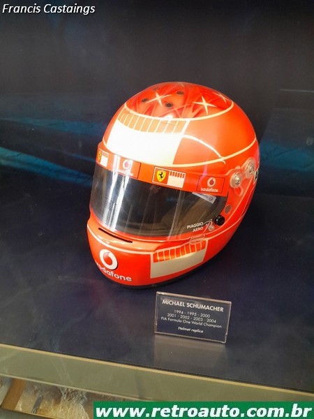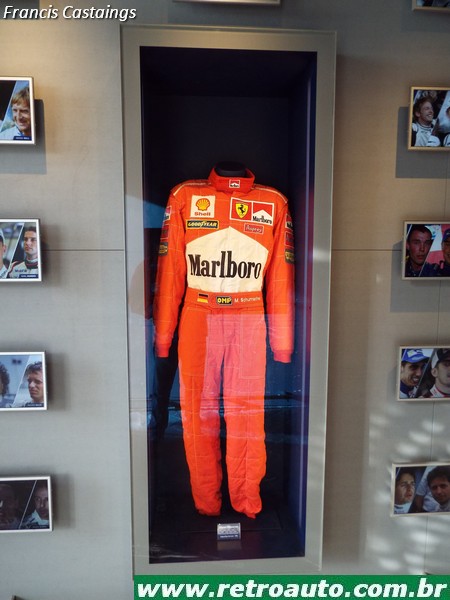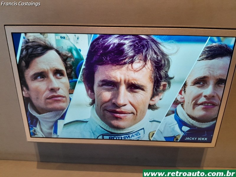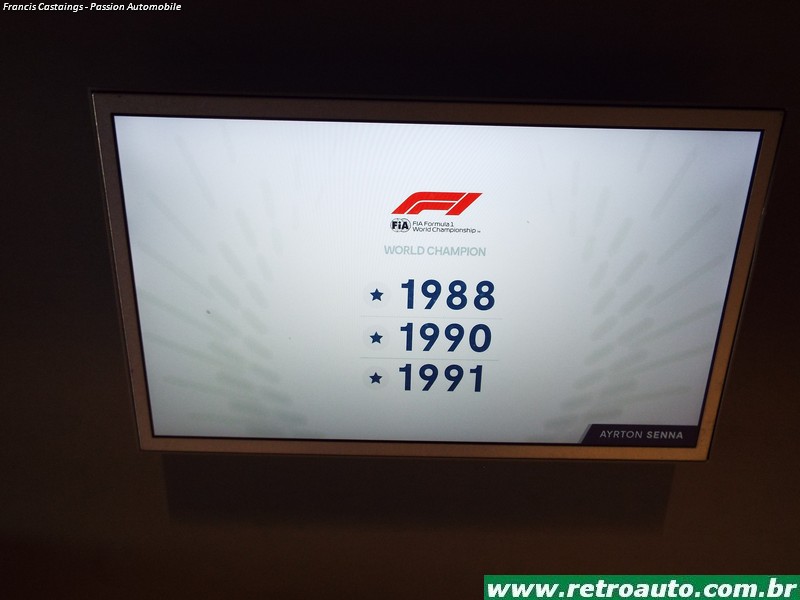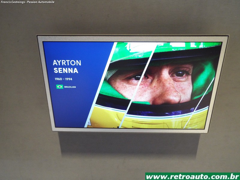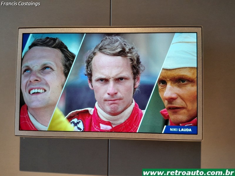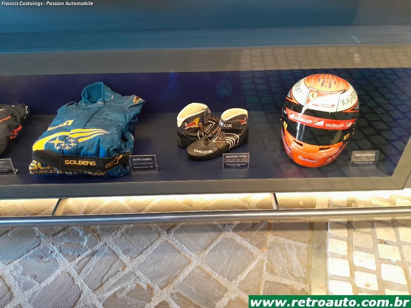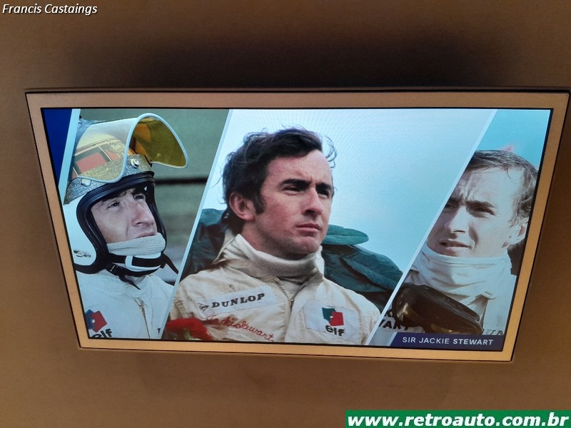 Há objetos como capacetes, macacões e telas com filmes curtos de pilotos famosos de várias categorias