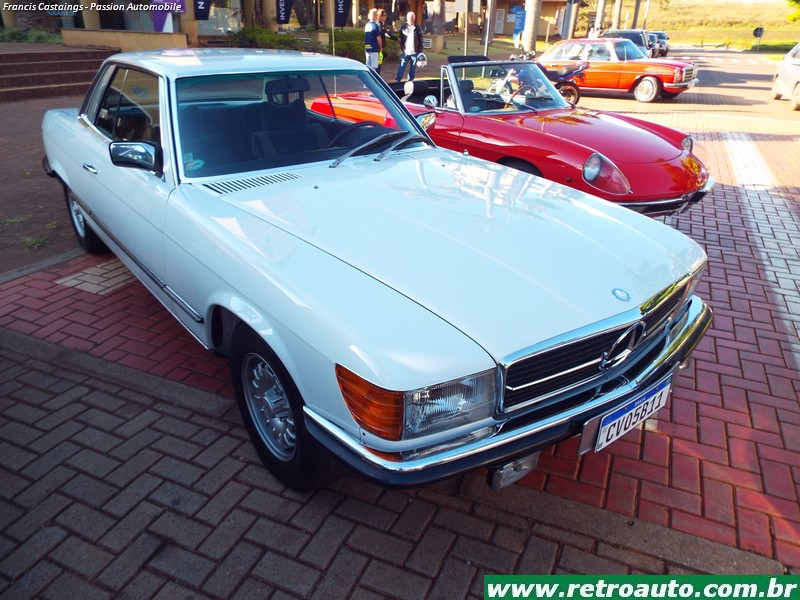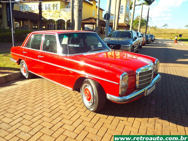 Outro da mesma geração. Mas 450 SE (Sonderklasse), ou seja, classe especial, V8, 4.520 cm³, alimentado por injeção eletrônica, 225 cavalos e 210 km/h de final