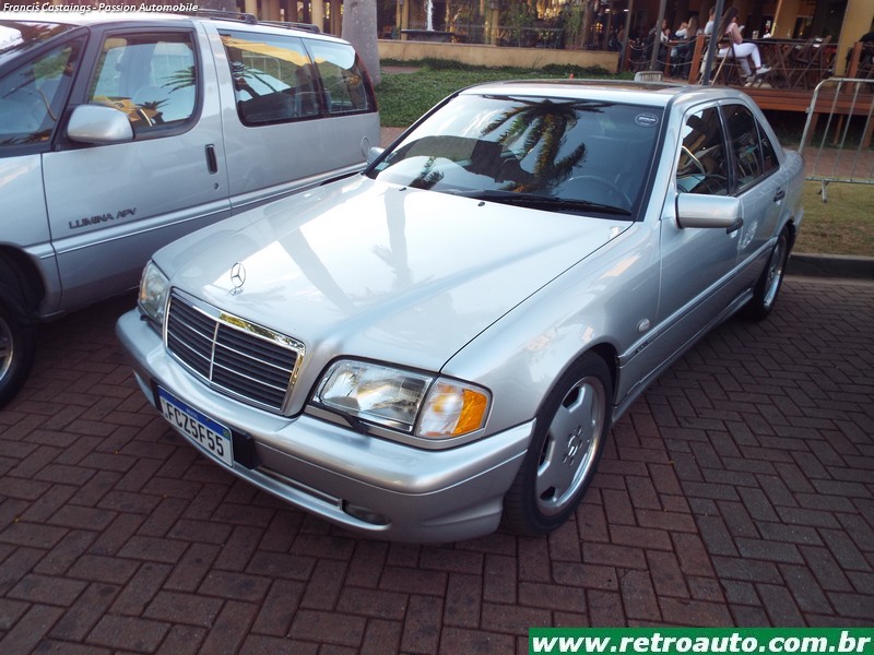 Um Mercedes-Benz W202 C43 AMG, V8, 24 válvulas, 4.266 cm³, 302 cavalos e velocidade limitada a 250 km/h. Acordo de cavalheiros entre as marcas Benz, Audi e BMW. AMG é a sigla do sobrenome dos sócios da empresa Hans Werner Aufrecht, Erhard Melcher e da cidade natal de Melcher, Grosspach