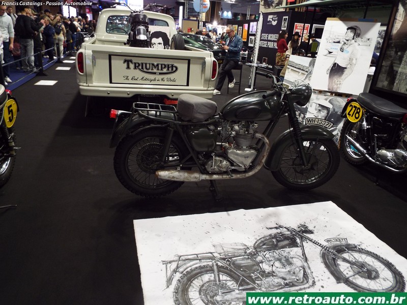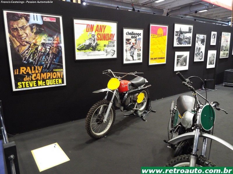 Em parceria com as empresas Les Epicuriens , NOC e AXA Passion , o Salão Rétromobile apresentou uma grande retrospectiva dedicada ao “Rei do Cool” na área de motocicletas do Pavilhão 7.2, exibindo modelos icônicos que marcaram a vida do ator. Uma motocicleta Triumph TR6 de 1961 de “Fugindo do Inferno “, a Husqvarna 400 Cross de 1971, a Honda 250 SRM de 1971 e o lendário Ford Mustang 390 Fastback de 1968 do filme “Bullitt” com as placas de licenciamento idêntica são apenas alguns dos veículos que os visitantes do Rétromobile 2026 poderão descobrir ou redescobrir.