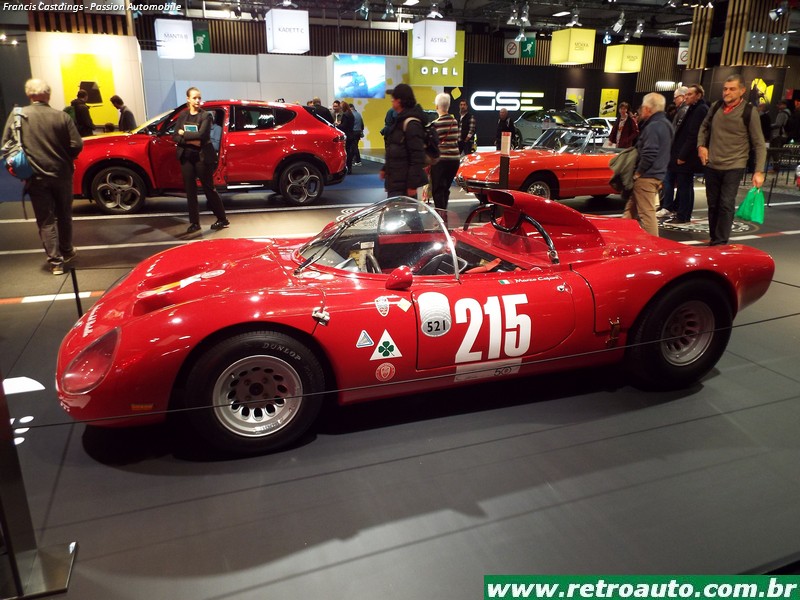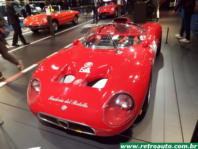 A empresa apresentou três modelos, um Alfa Romeo Spider Duetto 1966, a esquerda na foto abaixo e que dois muito interessante para as pistas. O Alfa Romeo Tipo 33/2 “Periscopica” (1967) foi um protótipo de corrida revolucionário que marcou o retorno da marca às competições mundiais, famoso pela tomada de ar tipo periscópio acima do arco de proteção. Equipado com um motor com 1.995 cm³, V8 a 90 graus de 270 cavalos a 9600 rpm e velocidade final de 260 km/h. Tinha um chassi inovador de tubos de alumínio em forma de H.